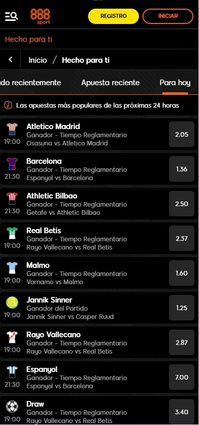 El enfoque de 888Sport se centra especialmente en el fútbol, aunque cubre una amplia variedad de eventos y disciplinas deportivas, junto con un robusto sistema de apuestas en vivo que permite a los usuarios disfrutar de una experiencia completa. Las cuotas de 888Sport están a la altura de sus competidores, haciendo de la plataforma una opción muy atractiva para los apostadores. 888Sport siempre ha estado vinculado al deporte, especialmente a través de patrocinios de alto perfil. Ha patrocinado equipos de fútbol como el Sevilla FC y se ha involucrado en otros deportes como el motor, billar y dardos. Su presencia en España es fuerte y continua en expansión.